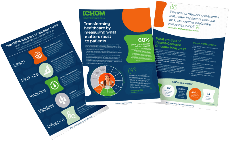 At ICHOM, our mission is to standardise and drive the global adoption of patient-centred outcome measurement as the benchmark of health and quality.